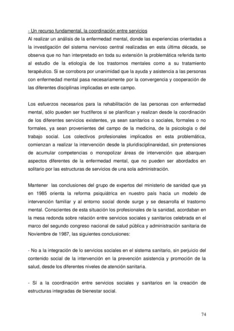 mental. Conscientes de esta situación los profesionales de la sanidad, acordaban en