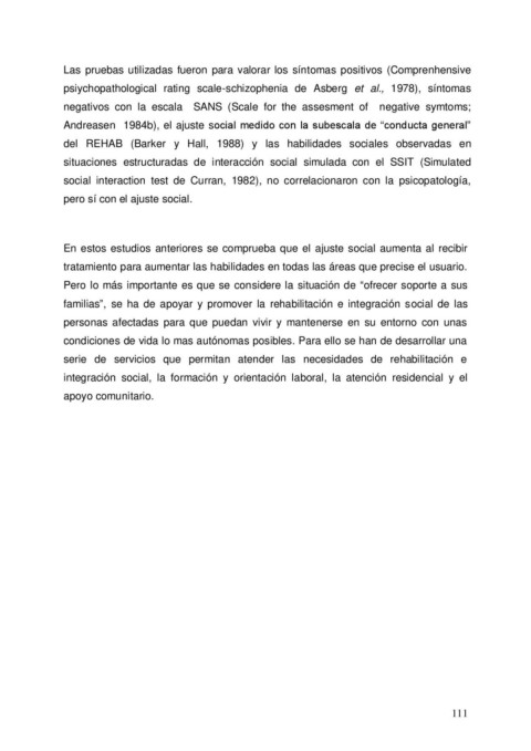 Las pruebas utilizadas fueron para valorar los síntomas positivos (Comprenhensive