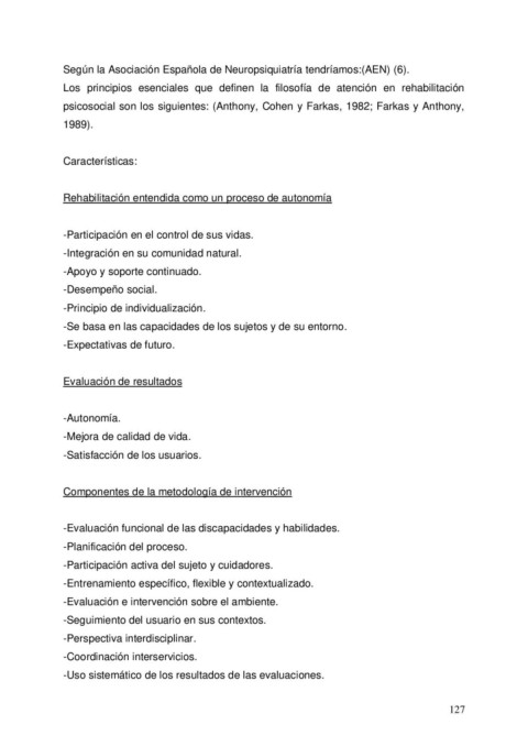 psicosocial son los siguientes: (Anthony, Cohen y Farkas, 1982; Farkas y Anthony,