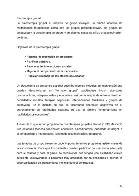 modalidades terapéuticas como son los grupos psicoeducativos, los grupos de