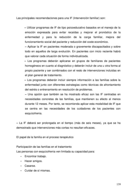 Las principales recomendaciones para una IF (Intervención familiar) son:
