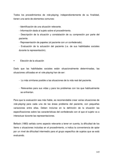 Bellack (1983) señala como aspecto relevante a tener en cuenta, la dificultad de los