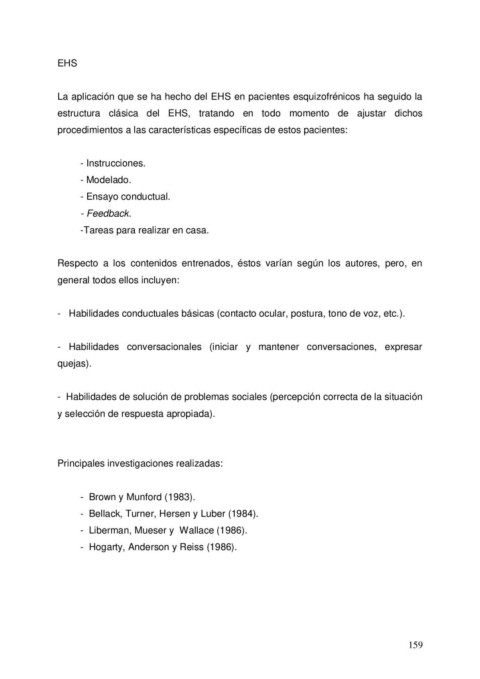 La aplicación que se ha hecho del EHS en pacientes esquizofrénicos ha seguido la