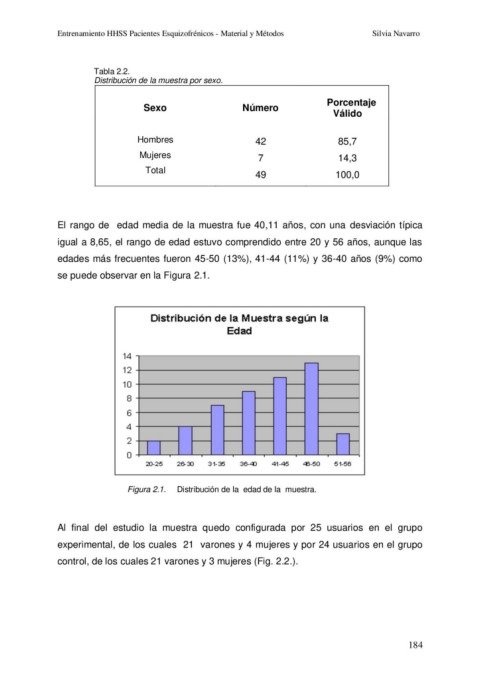 igual a 8,65, el rango de edad estuvo comprendido entre 20 y 56 años, aunque las