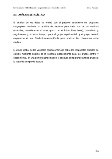 Entrenamiento HHSS Pacientes Esquizofrénicos - Material y Métodos Silvia Navarro
