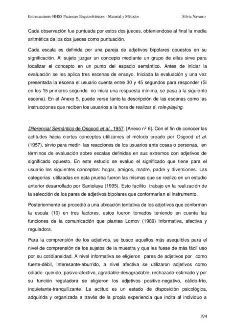 Entrenamiento HHSS Pacientes Esquizofrénicos - Material y Métodos Silvia Navarro