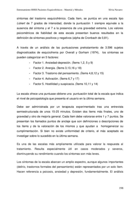 Entrenamiento HHSS Pacientes Esquizofrénicos - Material y Métodos Silvia Navarro