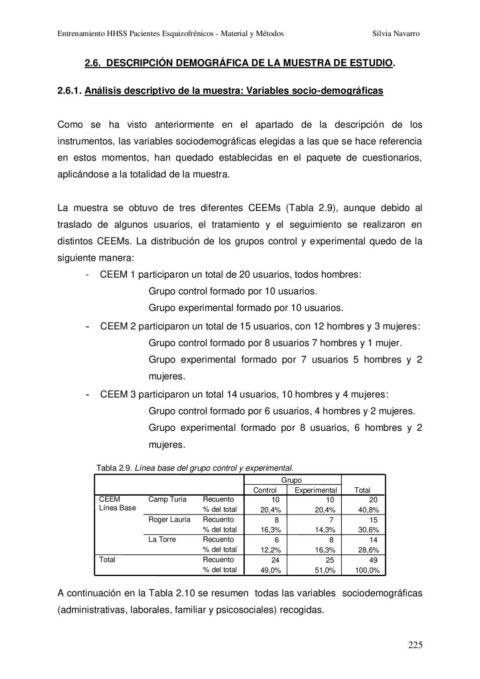 Entrenamiento HHSS Pacientes Esquizofrénicos - Material y Métodos                                            Silvia Navarro