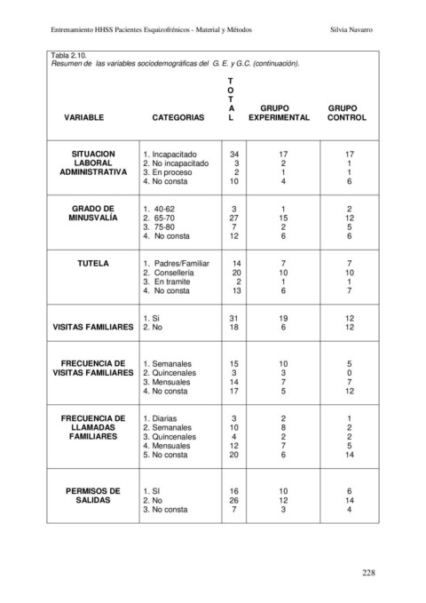 Entrenamiento HHSS Pacientes Esquizofrénicos - Material y Métodos Silvia Navarro