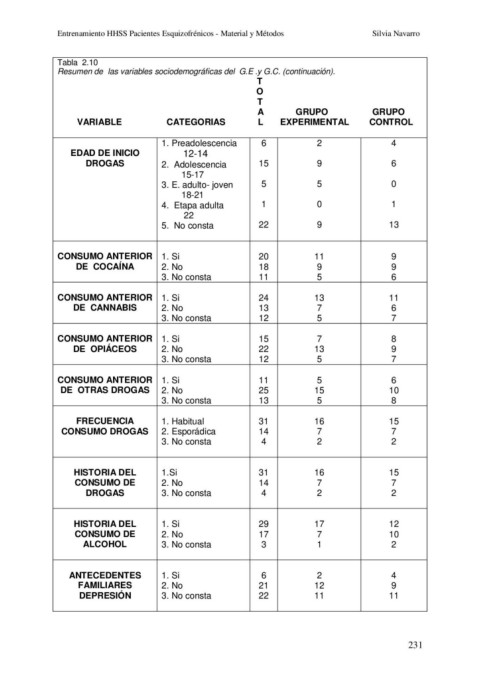 Entrenamiento HHSS Pacientes Esquizofrénicos - Material y Métodos Silvia Navarro