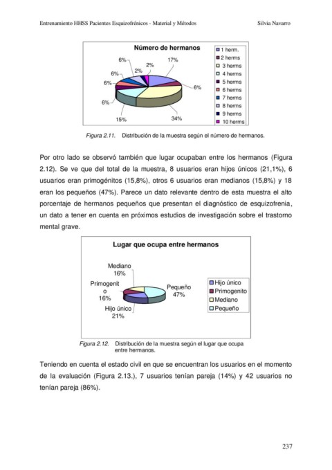 2.12). Se ve que del total de la muestra, 8 usuarios eran hijos únicos (21,1%), 6