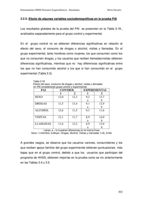 Entrenamiento HHSS Pacientes Esquizofrénicos - Resultados Silvia Navarro