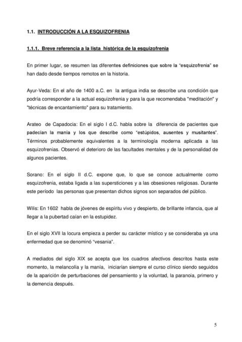 1.1.1.  Breve referencia a la lista  histórica de la esquizofrenia