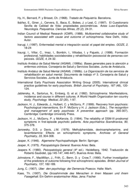 Entrenamiento HHSS Pacientes Esquizofrénicos - Bibliografia Silvia Navarro
