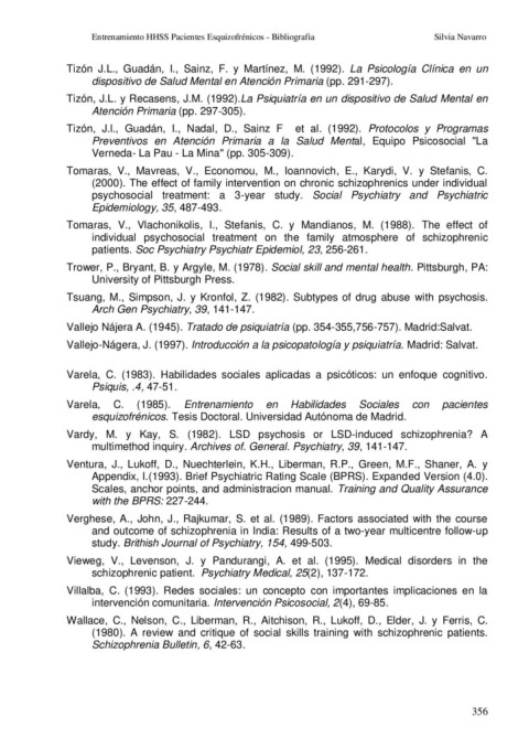Entrenamiento HHSS Pacientes Esquizofrénicos - Bibliografia Silvia Navarro