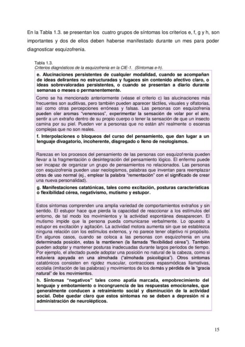 Criterios diagnósticos de la esquizofrenia en la CIE-1. (Síntomas e-h).