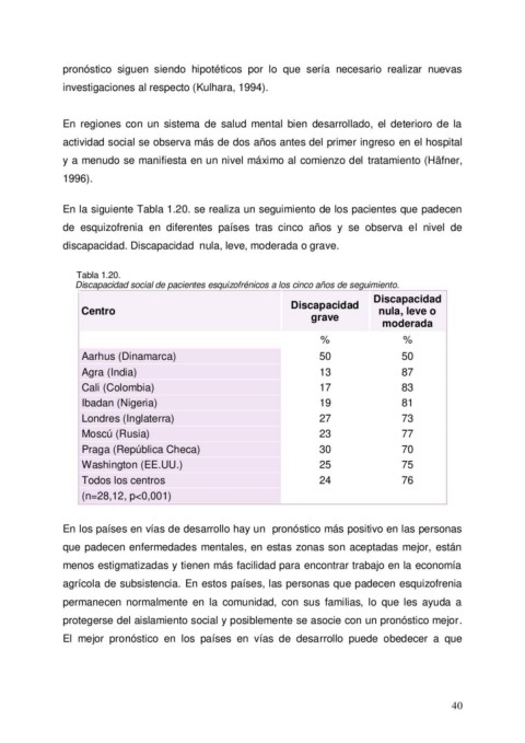 investigaciones al respecto (Kulhara, 1994).